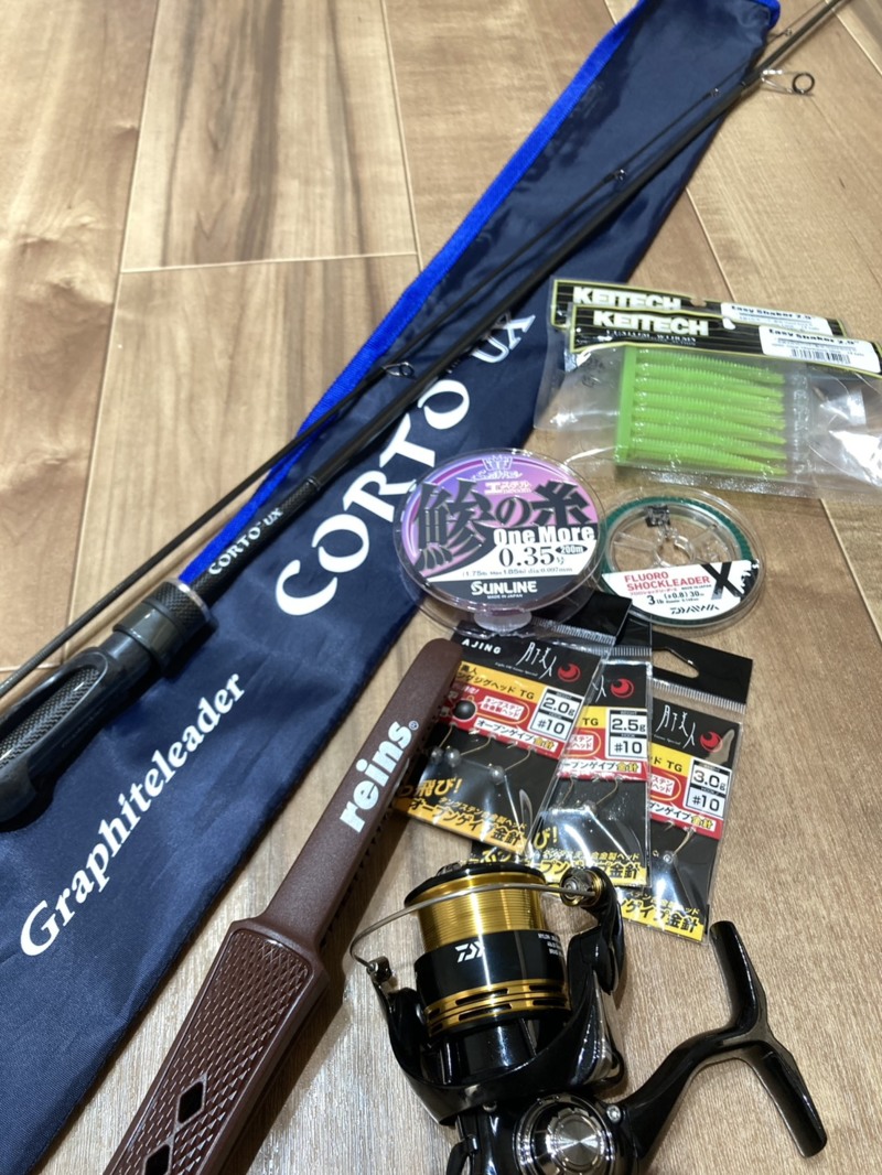 - ロッド:CORTO UX リール:レガリス2000S-P ライン:エステル#0.35号 リーダー:フロロ3lb ジグ単:アジングTG 2〜3g ワーム:イージーシェイカー2.5inch