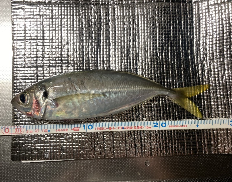 引くわ引くわでなんとか水面に上がってきたのは尺手前の27cmアジ🐟