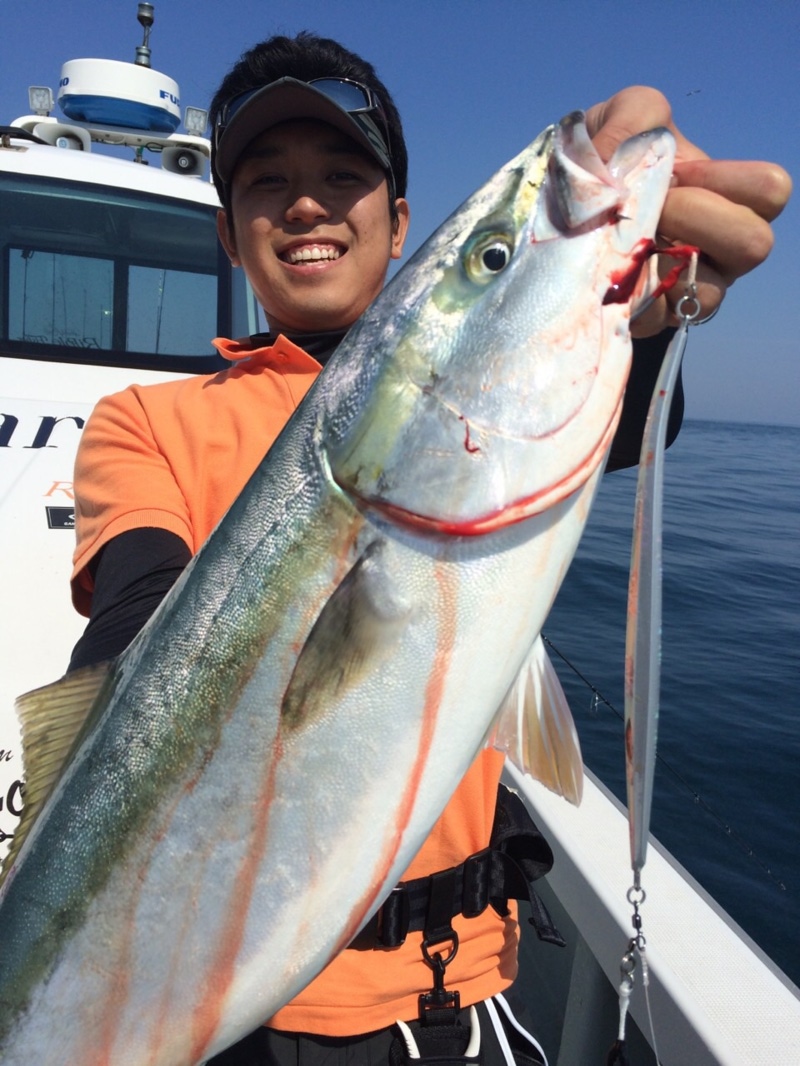 5月25日に日本海の「魁王丸」さんにお世話になり、ジギングに行って来ました。当日は天気にも恵まれ、8時出船でスタート!ポイントまで50分ぐらい走ります。まずは冠島周辺で開始。海を見るとなんやら赤い・・・。そう赤潮が出ていてコンディション的には最悪・・。と思っていたらナブラ発生!!!一気にテンションがあがります。すかさず中林がキャスティングで狙い、ルアーにチェイス、チェイス、チェイス・・・・掛かりませんでした(><)しっかり掛けやんかい!!とヤジっていると、ジグを落としていた岡本にHIT!よく引いて楽しませてくれたのは70cmぐらいのメジロでした。HITジグは「関西ワークスのバース170g、シルバーゼブラ」でした。