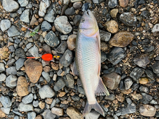 ヤナ跡下手はどの流れにも魚影がありそれなりに釣れますがポイントによりサイズ・数にばらつきがあります。