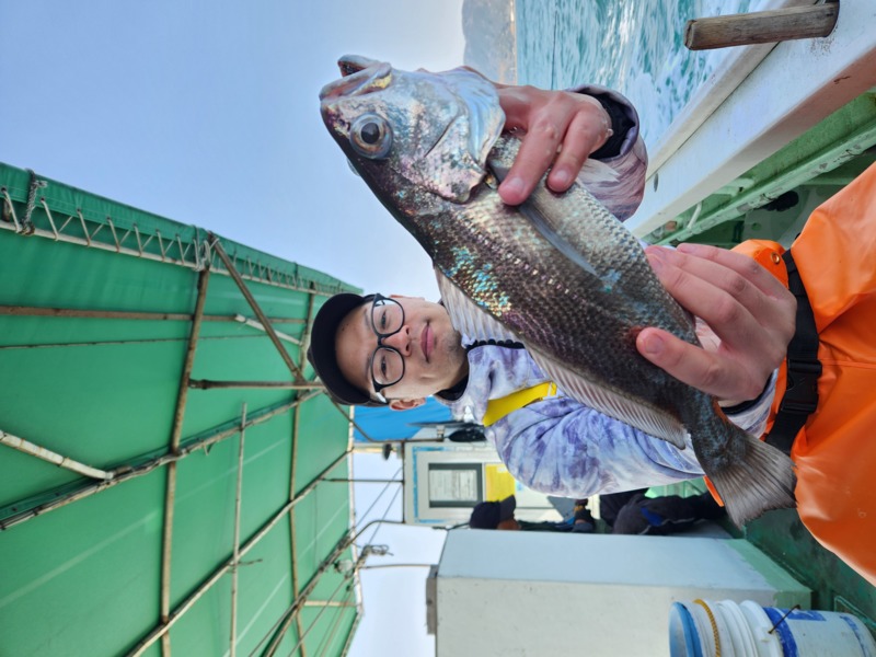 朝イチ仕掛けを落とすと後ろでさっそく電動リールの音が…
