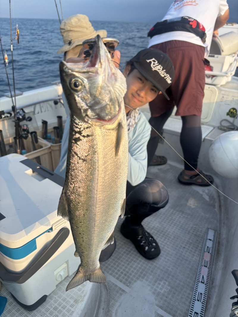 勝負の朝一番1流し目はノーヒットで「ここで釣れないと今日は厳しいなぁ〜笑」と船長の一言に耐久戦の覚悟をした直後に何とか1本キャッチ🎣