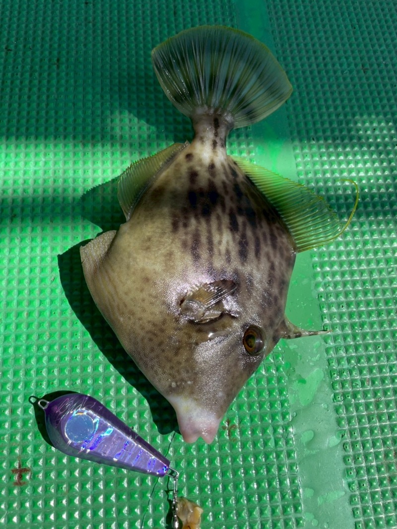 日中の気温は前回に比べ涼しくなりましたが、まだまだ海の中の水温が高いようで、エサ取りの猛攻に合い中々カワハギにエサを食わすのが難しい。