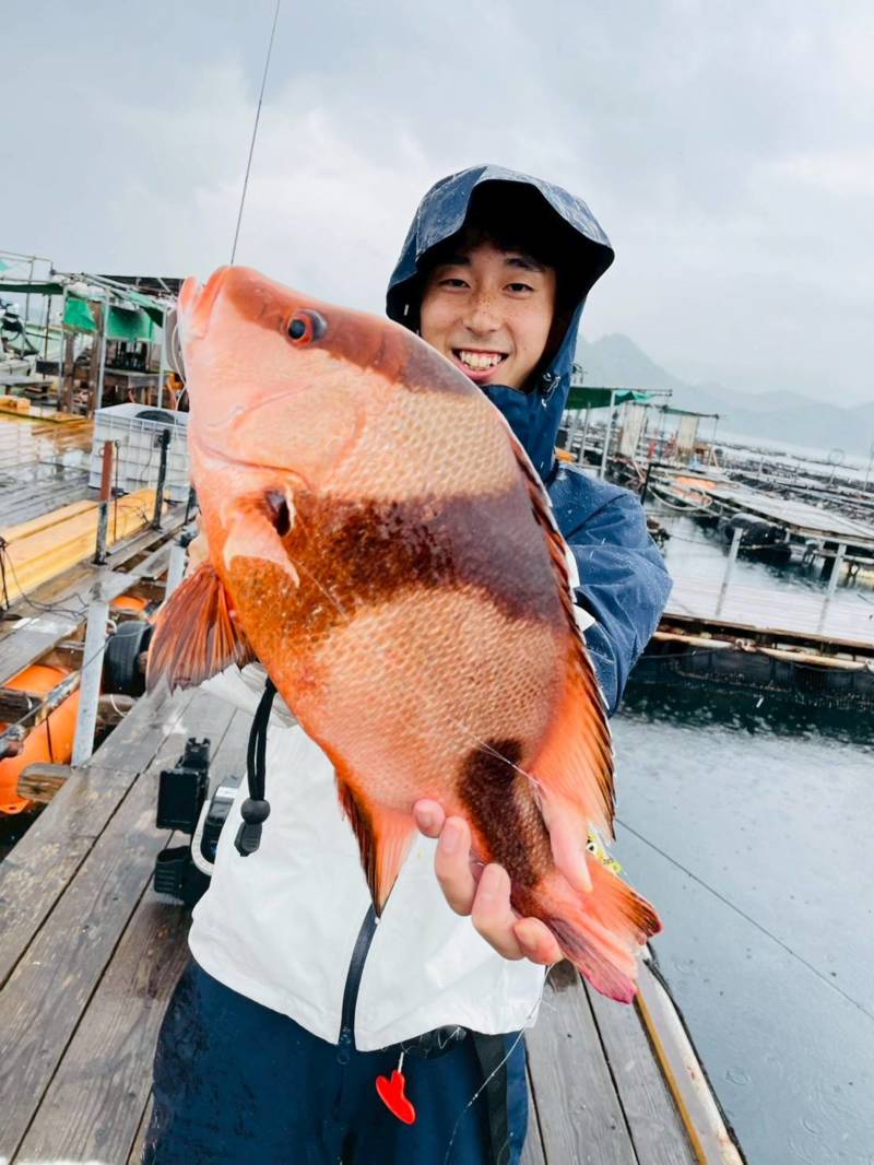 池田チームは別イケスでしたが真鯛がさらに渋く、青物が元気でアジ泳がせでブリヒラ、カンパチを釣り上げていました。