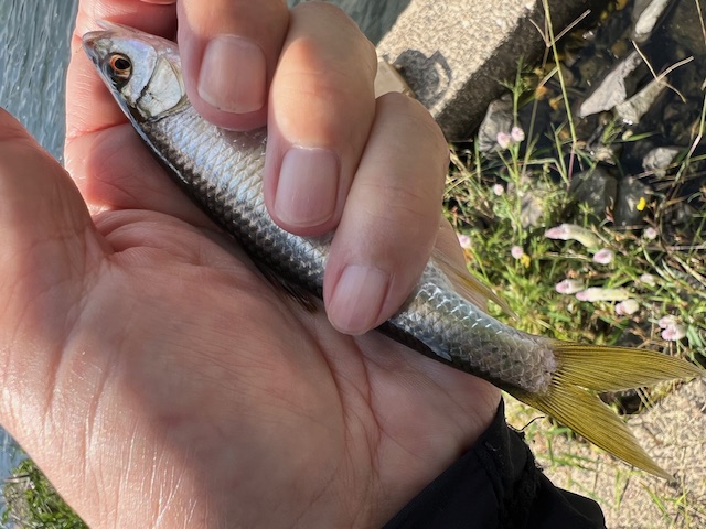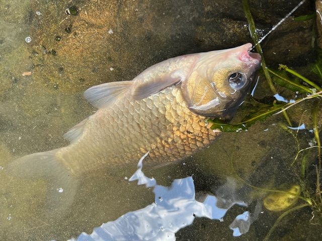 水深1.2メートル前後の寄れがあり流れの強いトロ場でやりました。