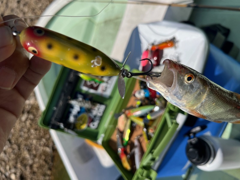 大減水の影響でポイントはかなり限定的でしたが、トップに元気よく飛び出してくれたコバッチたちが癒してくれました🐟