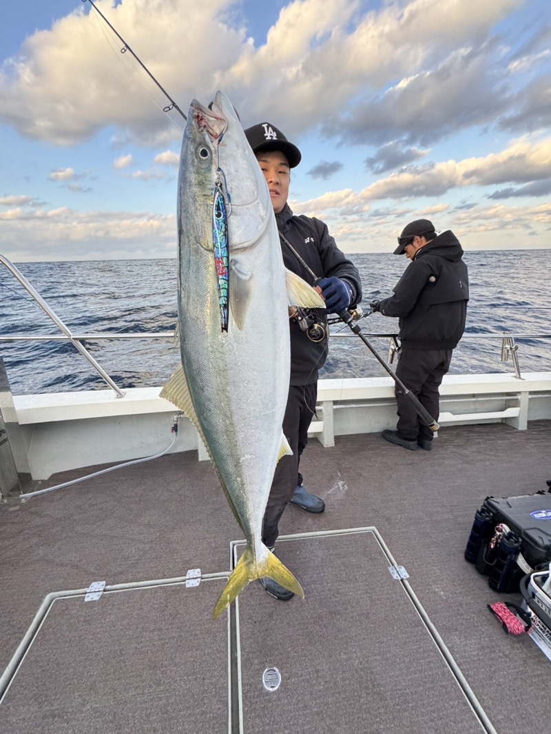 この後、ジギングはもとより船での釣り初めて!という平岡様のお嬢様も皆の助けを得て、人生初鰤をゲット!