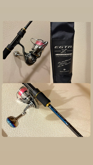 - リール:ダイワ イグジストLT2500S-XH+60mmハンドル+リブレEP37ノブ ロッド:EGTRXアルティメイトS65ML+ ライン:PE0.6号+リーダー2.5号 エギ:クロノ ケストレル(カラー:ポイズン、毒リンゴ) シンカー:ヤマシタ TRシンカー15g〜50g