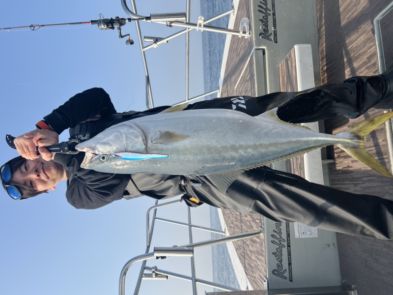 するとお昼も過ぎた12時半、遂にスタッフ松元のホロホロ200gに鰤がヒット‼️