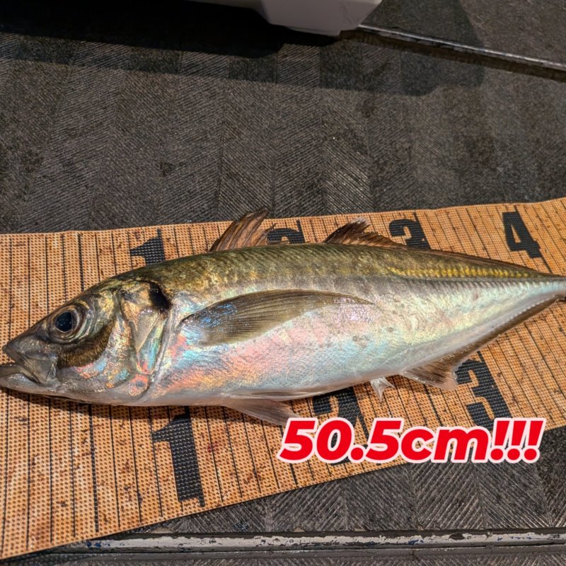 チェンジして直ぐに佐々木の竿にガツンッとしたアタリがあり、上がってきたのは50.5cmのテラアジ✨️このまま続くかと思われましたが、失速、、💦