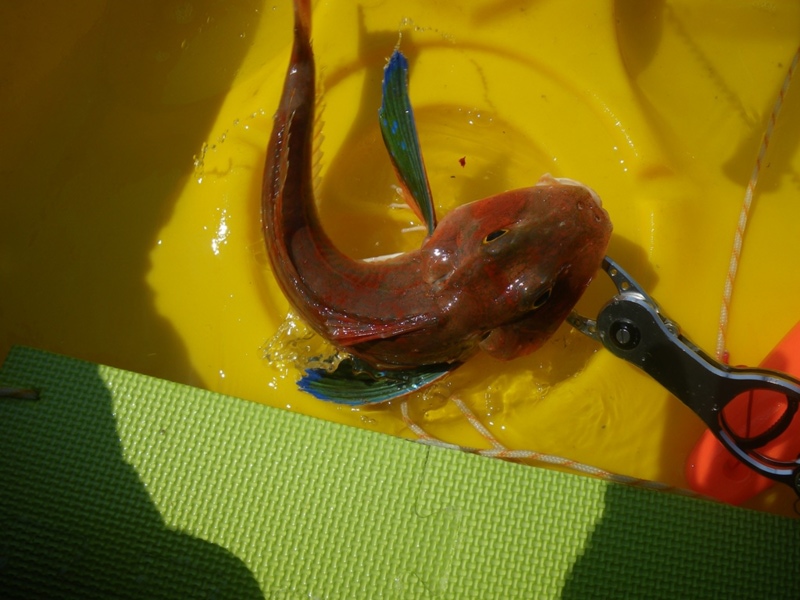 地元の方の話では日によってムラが有るものの、まだまだ青物が好釣で真鯛は遅れ気味との事。うんと沖まで出れば真鯛もよく釣れているようですがカヤックでは射程距離外。