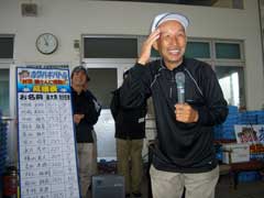 当日の釣果は10尾が最高で、9尾が6人もいた。ちなみに村田名人は、アドバイスして回りながら11尾の釣果はさすがであった。当日の大物賞は25.5センチ明渡民雄氏(摂津市)、最多賞は10尾西田耕造氏(和泉市)、早釣り賞1番は浦上信幸氏(豊中市)、2番は吉田光徳氏(松原市)、イッパチ賞は9尾・22.5a横山義夫氏(豊中市)。